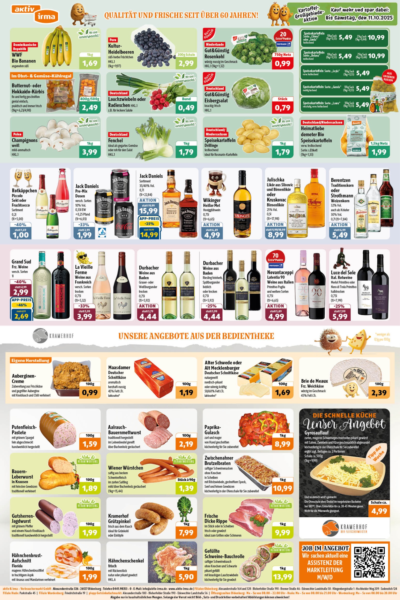 Sie möchten einen Blick in unsere Angebote der Woche werfen? Kein Problem: Unseren aktuellen Prospekt können Sie jetzt hier herunterladen. Es lohnt sich! Alle zehn aktiv & irma-Märkte im Oldenburger Raum bieten ein gehobenes Sortiment – mit einer Riesen-Auswahl an wechselnden Angeboten zu günstigen Preisen. Für ein rundum gelungenes Einkaufserlebnis!