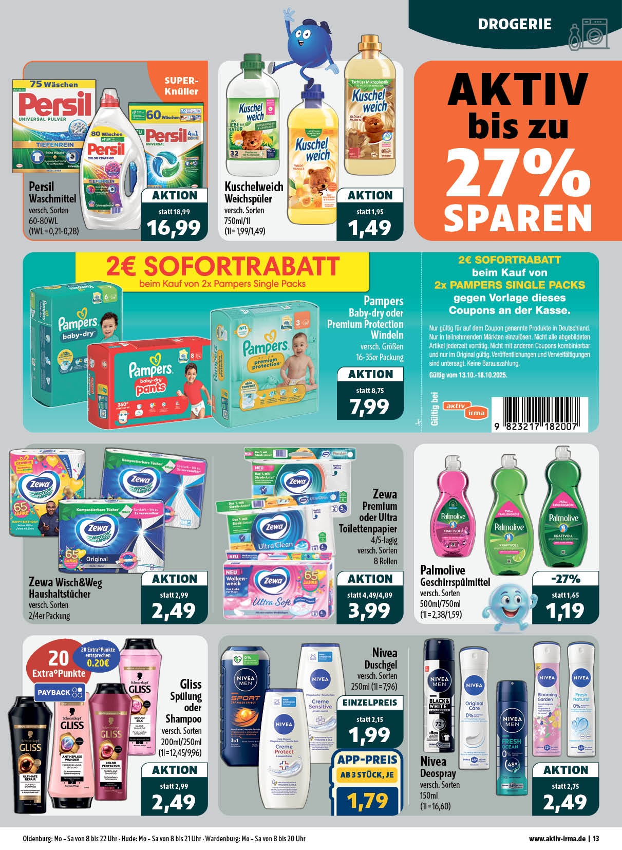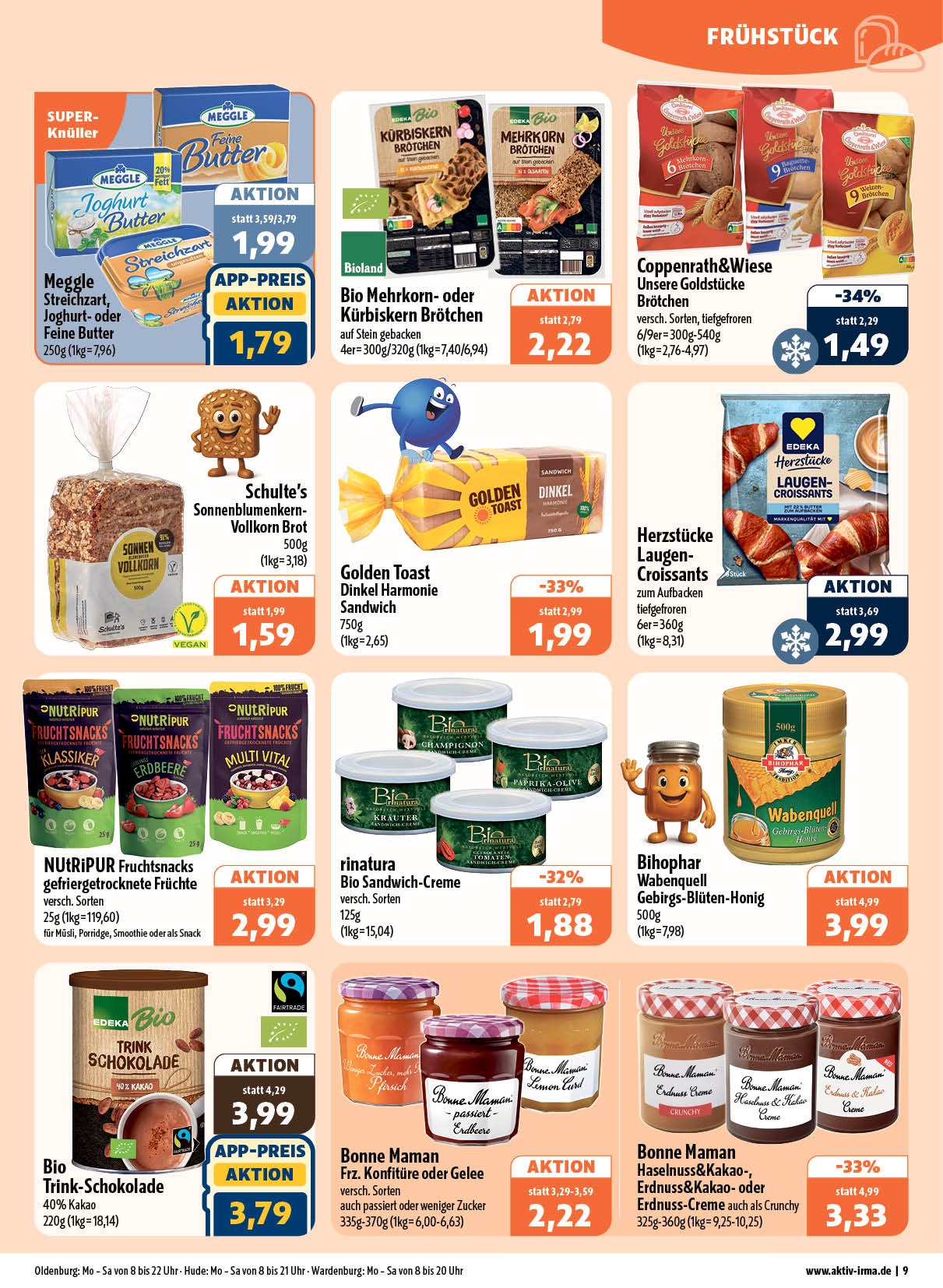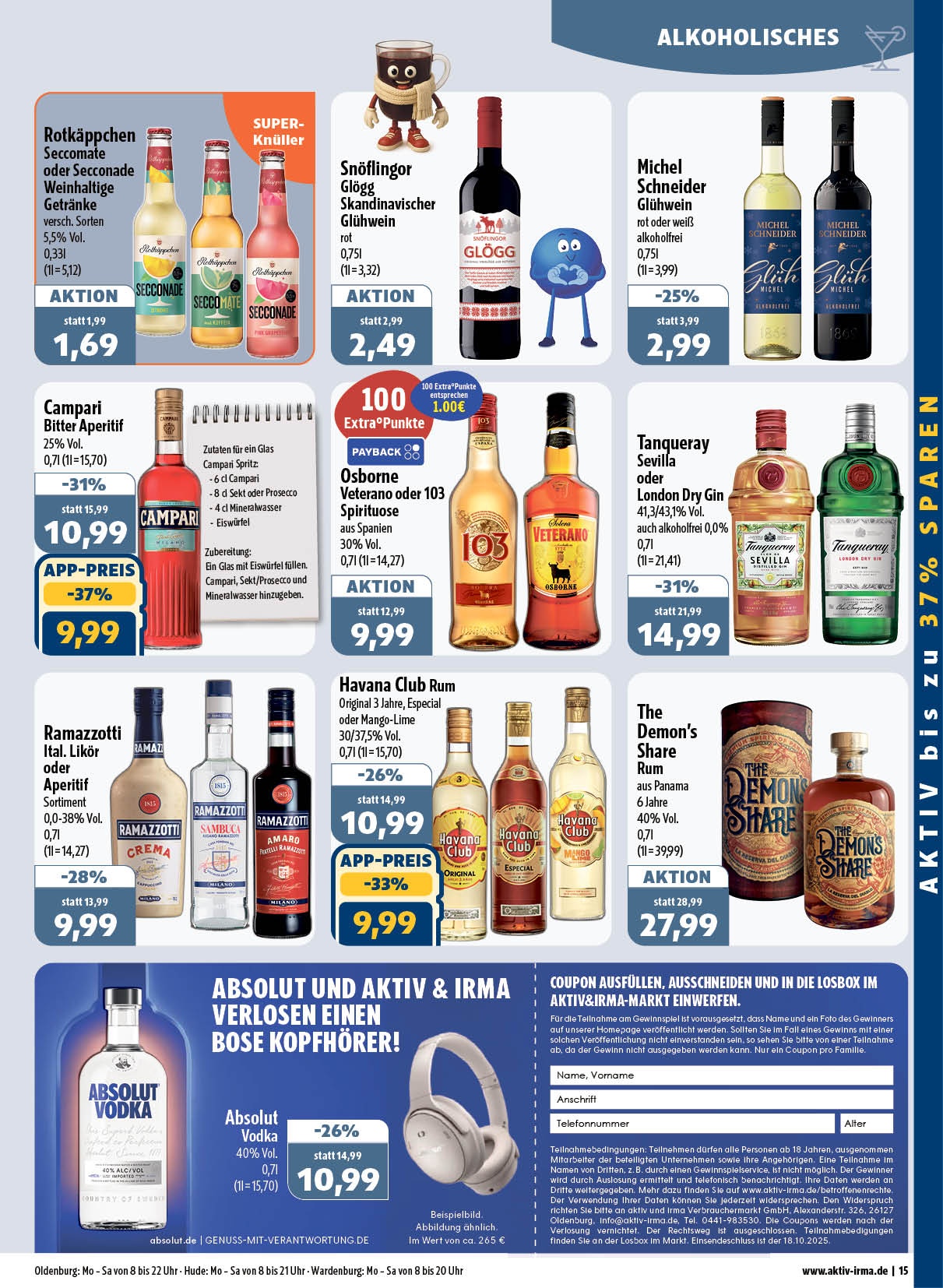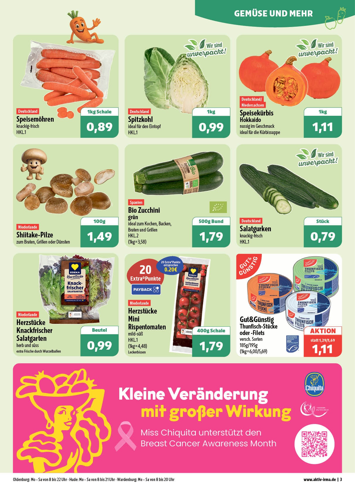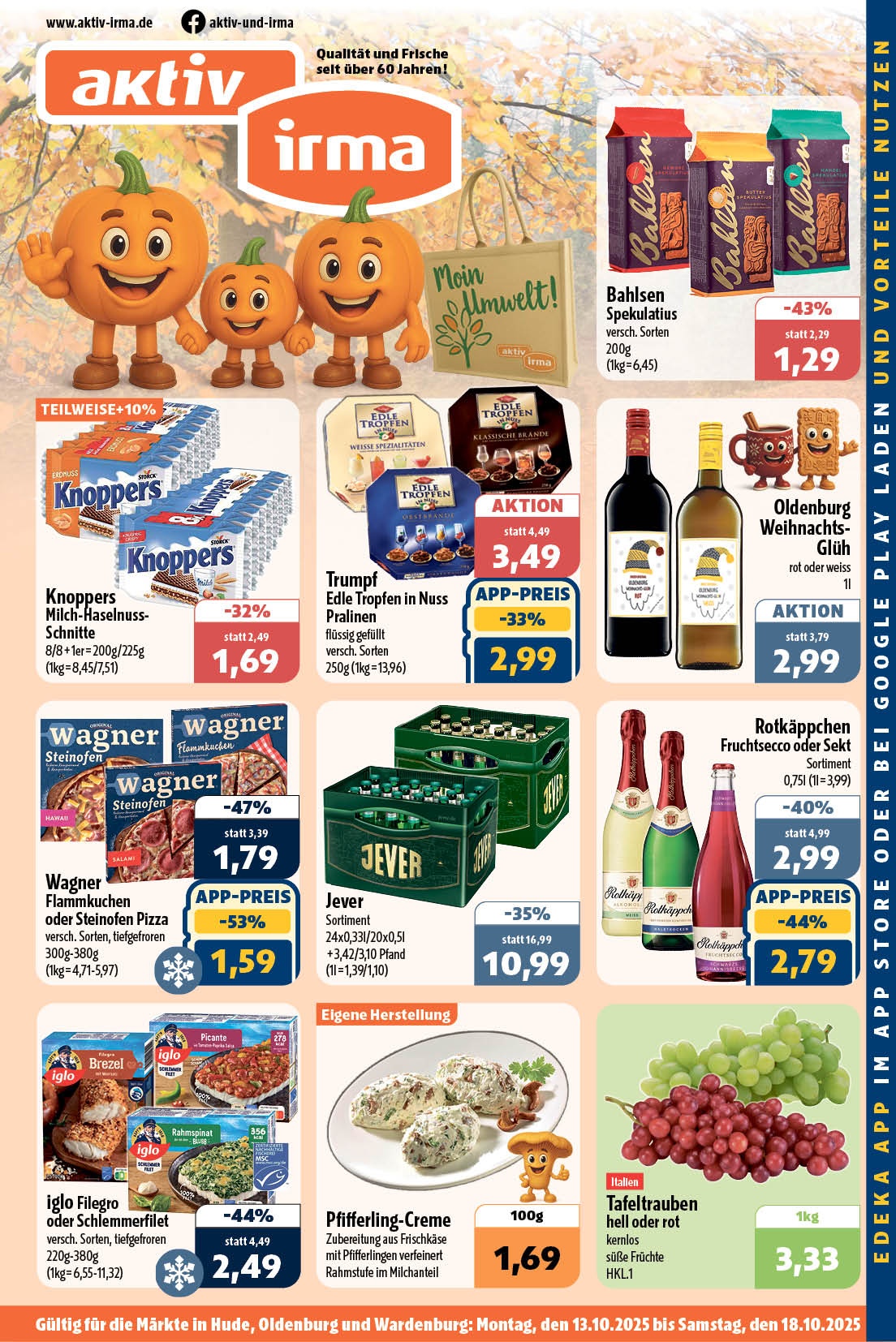 Sie möchten einen Blick in unsere Angebote der Woche werfen? Kein Problem: Unseren aktuellen Prospekt können Sie jetzt hier herunterladen. Es lohnt sich! Alle zehn aktiv & irma-Märkte im Oldenburger Raum bieten ein gehobenes Sortiment – mit einer Riesen-Auswahl an wechselnden Angeboten zu günstigen Preisen. Für ein rundum gelungenes Einkaufserlebnis!